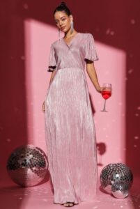 The BAESD Embellished V-Neck Flared Sleeves Satin Maxi Dress combines elegance and sophistication for any special occasion. Crafted from luxurious satin fabric, its flowing silhouette exudes charm and grace, making it a standout piece that ensures you are the center of attention. The thoughtful embellishments adorning the neckline add a touch of glamour without overpowering the overall design, striking the perfect balance between subtlety and allure.