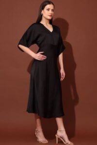Step into effortless sophistication with the Kimono Sleeve Satin Maxi Dress. Designed to combine timeless elegance and casual wearability, this black solid maxi dress is your new wardrobe go-to for any occasion. Crafted with a luxurious satin fabric, it delivers a subtle sheen that enhances its captivating allure. Whether you’re attending a formal dinner or a stylish cocktail event, this dress is sure to make you shine.