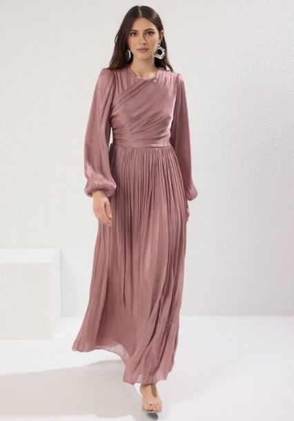 This stunning maxi dress features a classic round neckline, offering a versatile and understated elegance that adapts effortlessly to any accessory or styling choice. The mauve solid color exudes a warm and inviting vibe, making it easy to pair with neutral tones or bold accents. Crafted from high-quality fabric, the dress ensures all-day comfort while providing an eye-catching, flowing silhouette that complements a variety of body shapes.