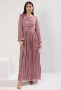 The Trendyol Round Neck Mauve Solid Maxi Dress is more than just a wardrobe piece; it’s a celebration of timeless style and effortless grace. Designed for individuals seeking sophistication with a dash of modern flair, this maxi dress is perfect for any occasion, whether it’s a casual outing, a formal event, or a cozy dinner date.
