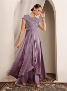Crafted with precision, this maxi dress features a round neckline and short sleeves, offering both simplicity and understated elegance. The layered satin construction ensures a fluid, flowing silhouette that flatters every body type, while the detailed embroidery elevates its charm. Designed for women who appreciate quality and style, this dress strikes the perfect balance between timeless aesthetics and contemporary trends. The lightweight fabric feels soft against the skin, providing ultimate comfort while maintaining its luxurious appearance.